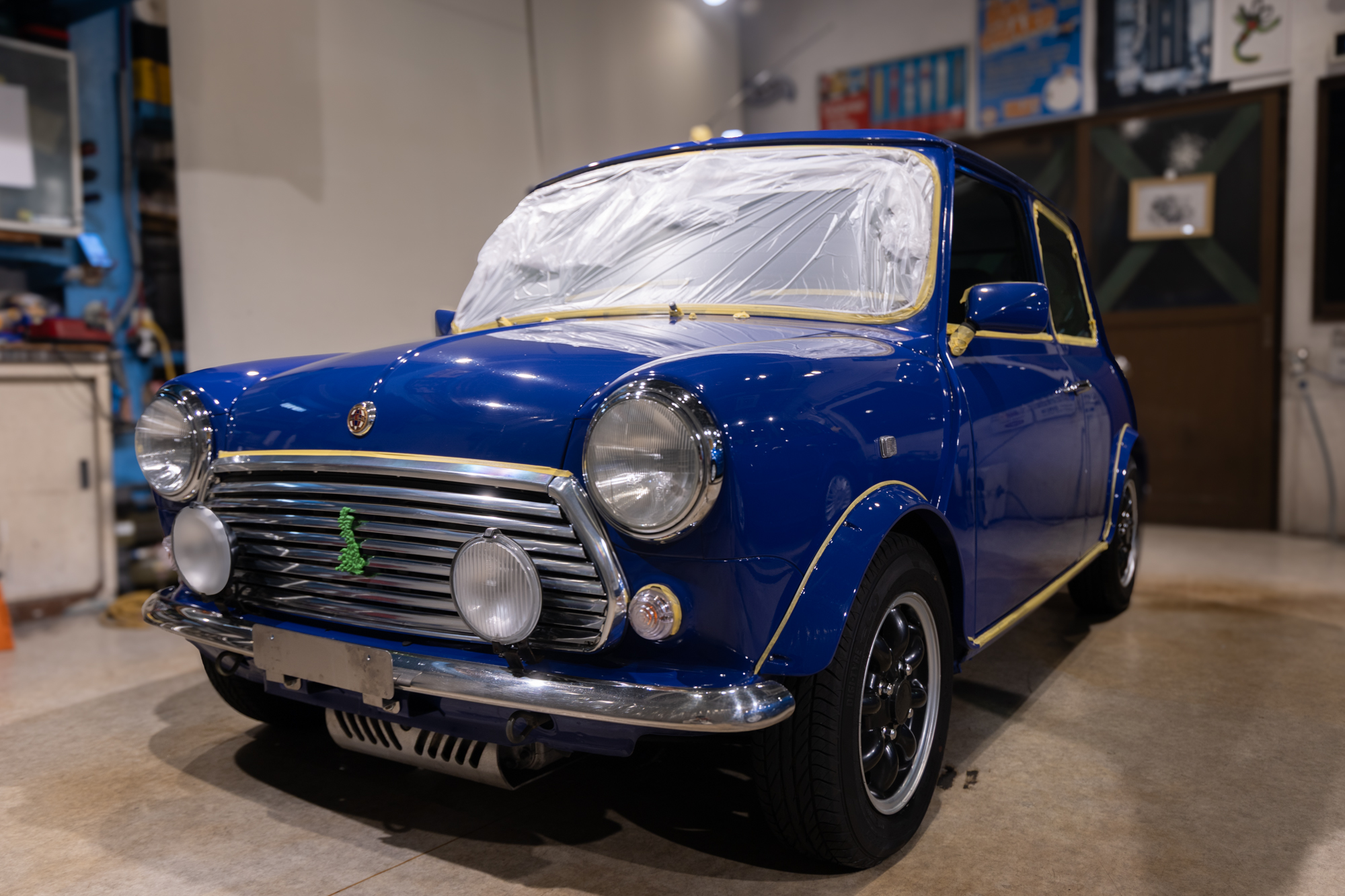 コーティング下地処理研磨用にマスキングを行います